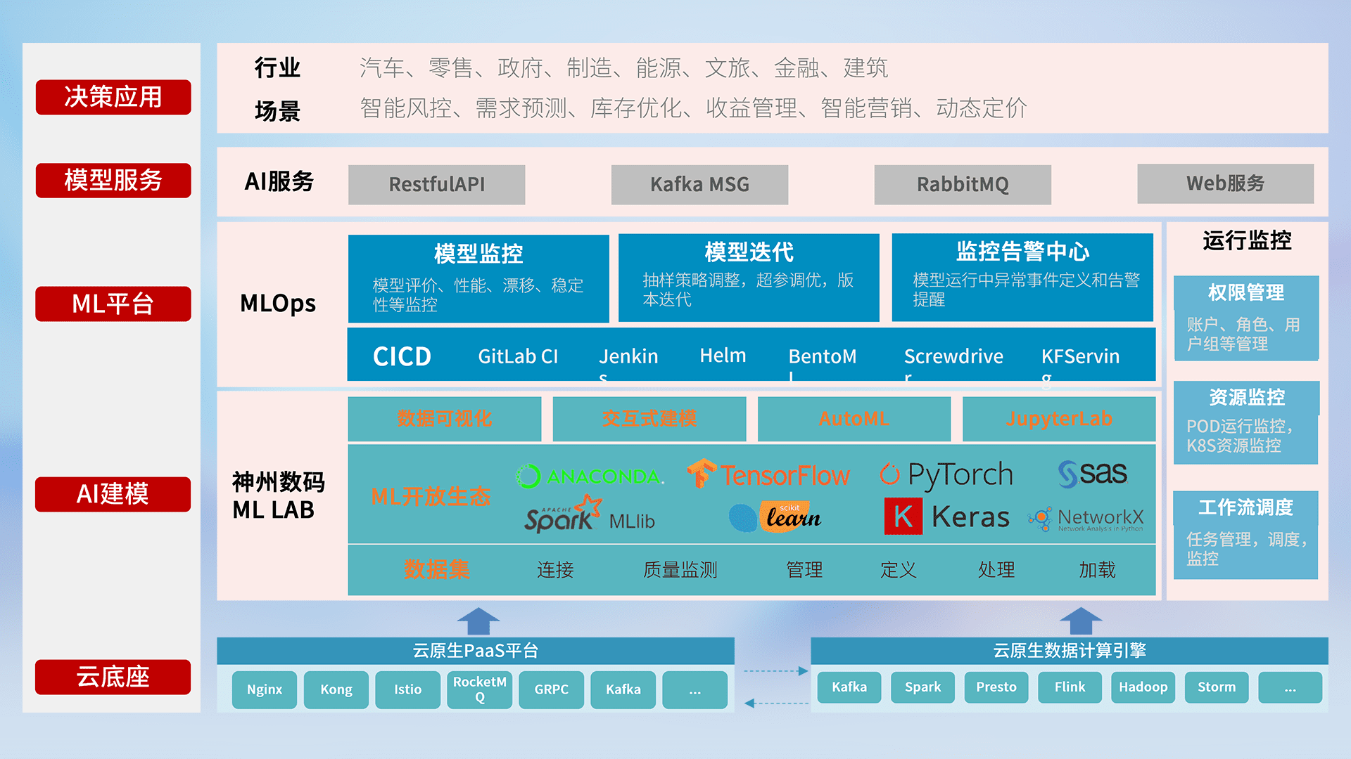 数据+模型双引擎驱动,,,,面向智能服务场景,,,快速灵活利用AI技术,,,,支持业务决策,,,助力企业智能化转型破局。。
